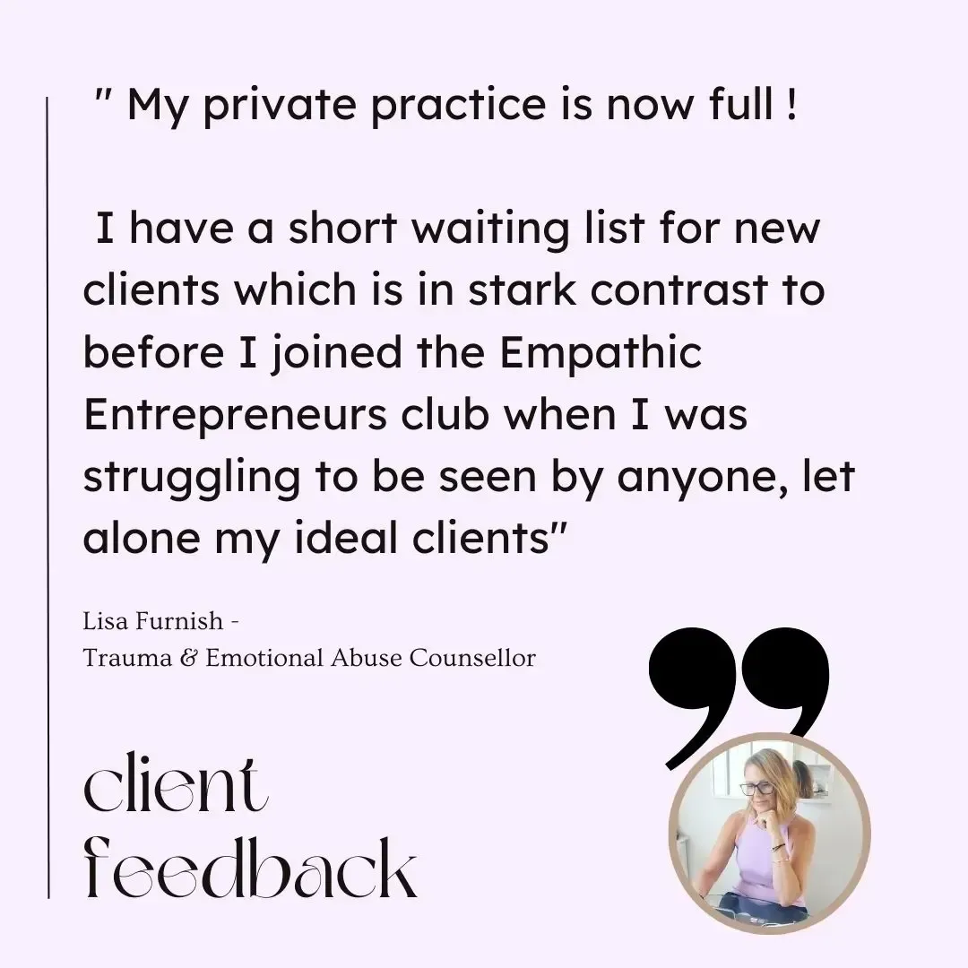 The difference is me and my team of experts! There is no other support membership like this of this quality. As well as a trained Counsellor myself, I am also a qualified Accountant and awards winning Business Mentor, so I am perfectly positioned to guide you to success.